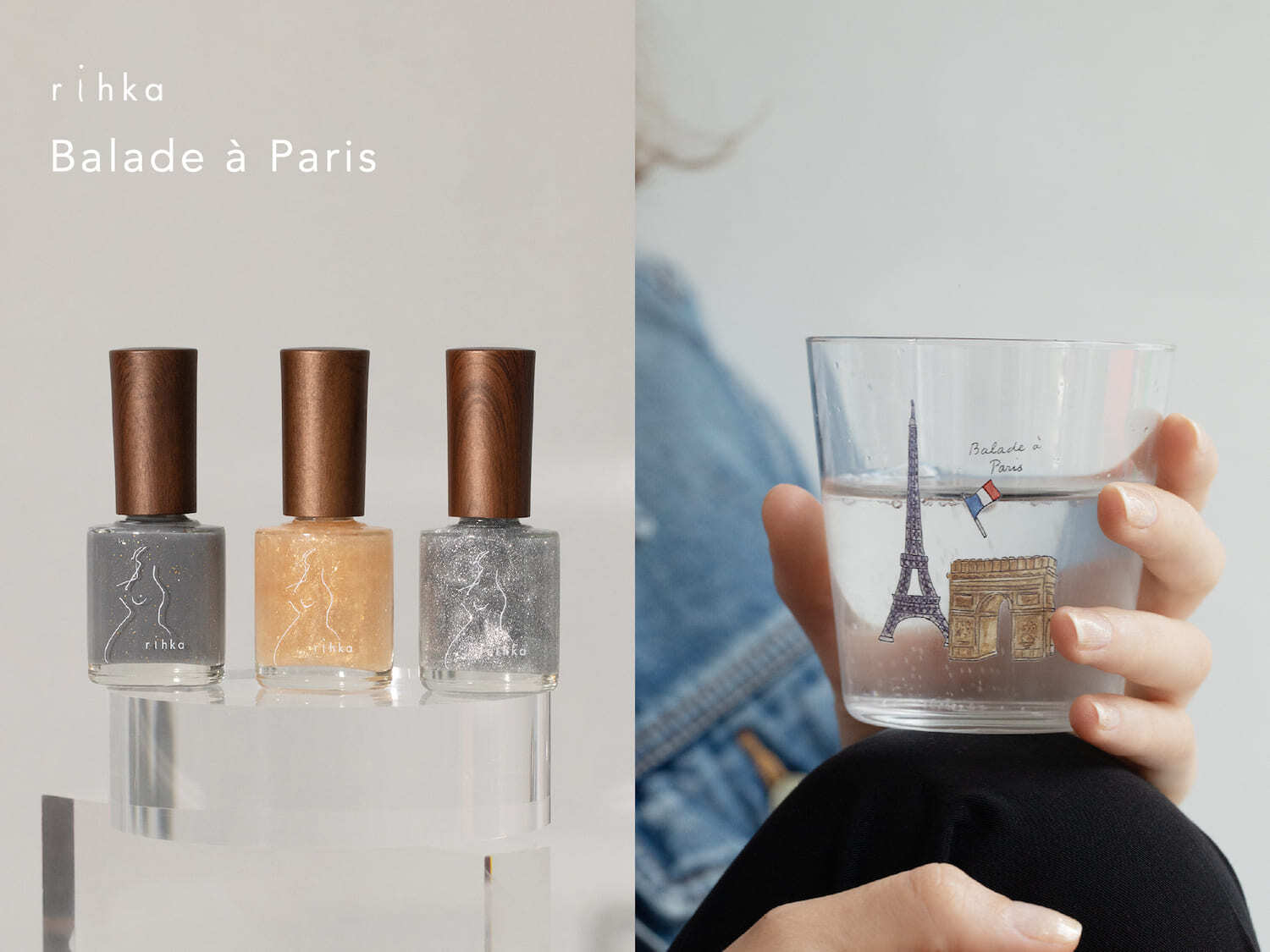 株式会社newnが展開する、ヘアメイクアップアーティストの松田 未来がプロデュースするコスメティックブランド「rihka(リーカ)」は、フランス在住イラストレーターIsabelle Boinotさんとコラボレーションした限定コレクション「Balade à Paris(バラード ア パリ)」を2023年4月22日(土)より数量限定で発売します。本コレクションは、パリの日常に欠かせない「グラス」からインスピレーションを受け、新作ネイルポリッシュ3色のほか、ブランド初のオリジナルグラスが登場します。